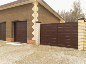• Конструкция откатных ворот с кирпичными столбами