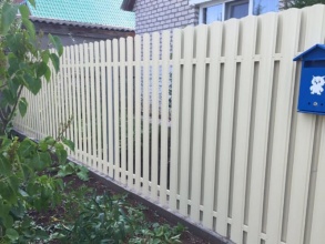 Заборы из металлического штакетника на ленточном фундаменте в Дрезне