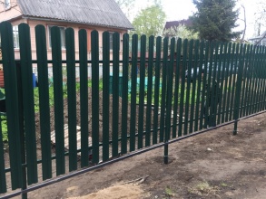 Заборы из металлического штакетника с забивными столбами в Дрезне